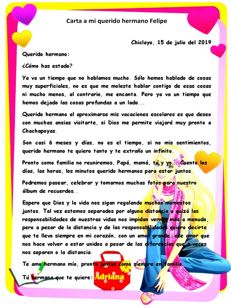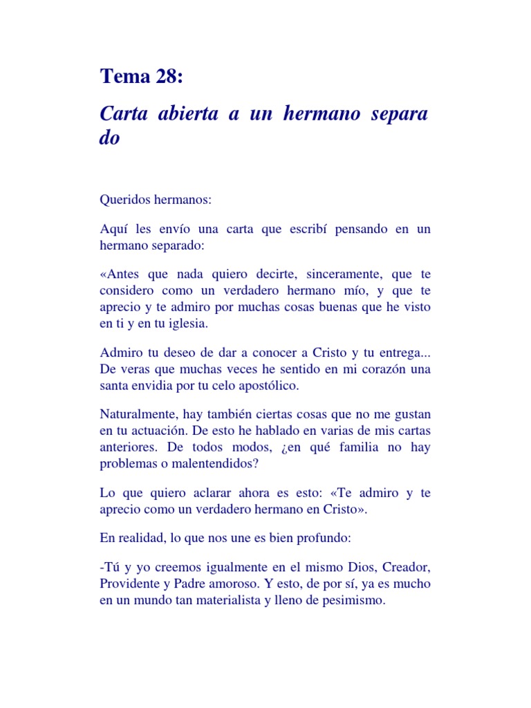 No me regañes por favor no me juzgues. Provided to YouTube by The Orchard EnterprisesCarta A Un Hermano Mario BofillLos 20 Mejores 2005 GLD Distribuidora SAReleased on. Quisiera que estas palabras que te escribo puedan servirte y ayudarte en estos momentos quiero que sepas como pienso y como soy para que veas como la vida nos da a cada uno lo que en. Son un conjunto de cartas sencillas y cariñosas escritas por Mons. Carta a un Hermano. Principal guitarra y guitarra eléctrica tono. Juntos crecimos entre la distancia y la cercania pese a las circunstancias fuiste valiente y no decaiste ni por un momento eso vi en ti. Carta a mi hermano. Dices extrañar amigos pero alguna vez te has quedado un día completo en casa.