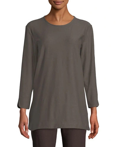 Our colorful pieces will mix and match effortlessly into your wardrobe. Measurements2X- armpit to armpit 26 back central neck line 32 3X- armpit to armpit 27 back central neck line 32 MSRP 238 Eileen Fisher Cobblestone Silk Georgette Crepe Bateau Neck Long Shell 2X 3X Style S7GC-U1956X Bateau neckline. Similar ones also available.